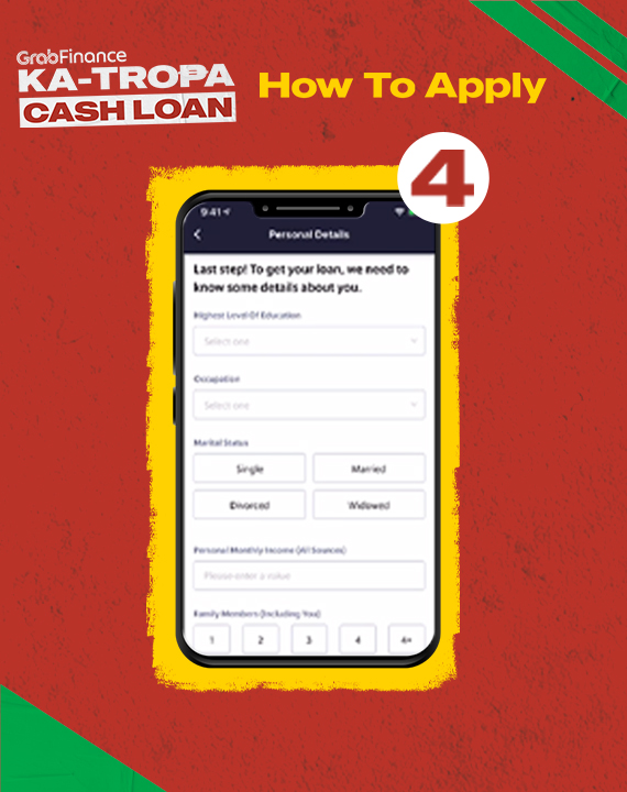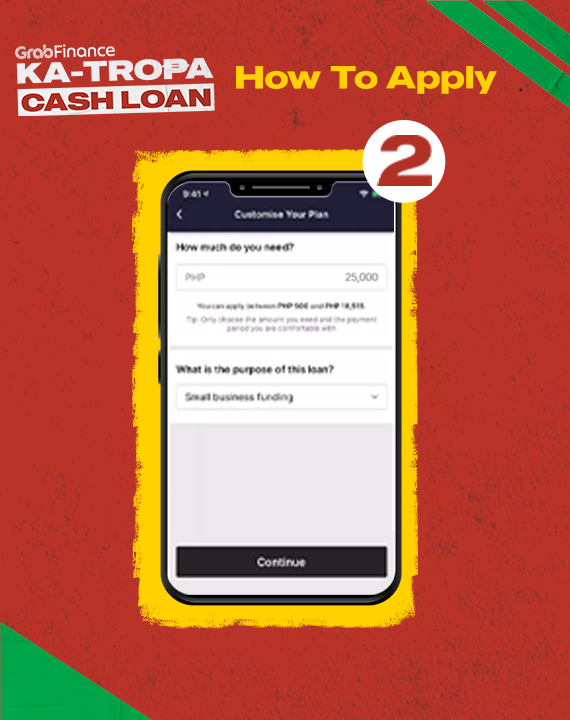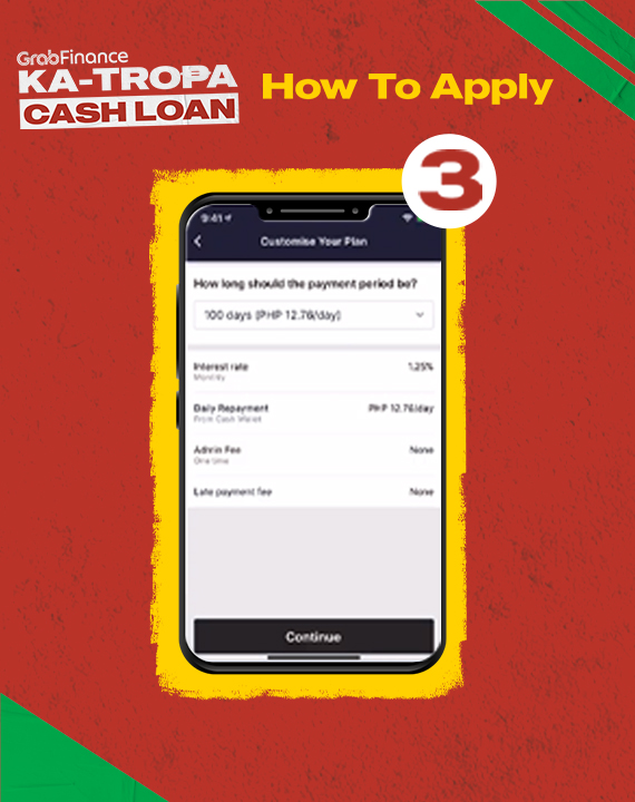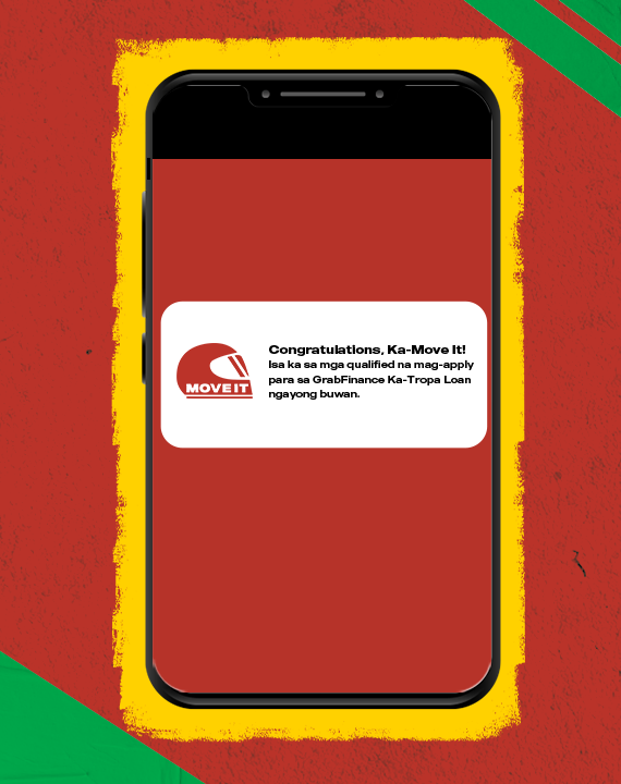 PAALALA: Ang Grab Finance ay available lamang para sa mga qualified na riders. Hintayin ang sms mula sa Grab Finance para maconfirm na ikaw ay maari ng mag-apply para sa Ka-Tropa Loan.