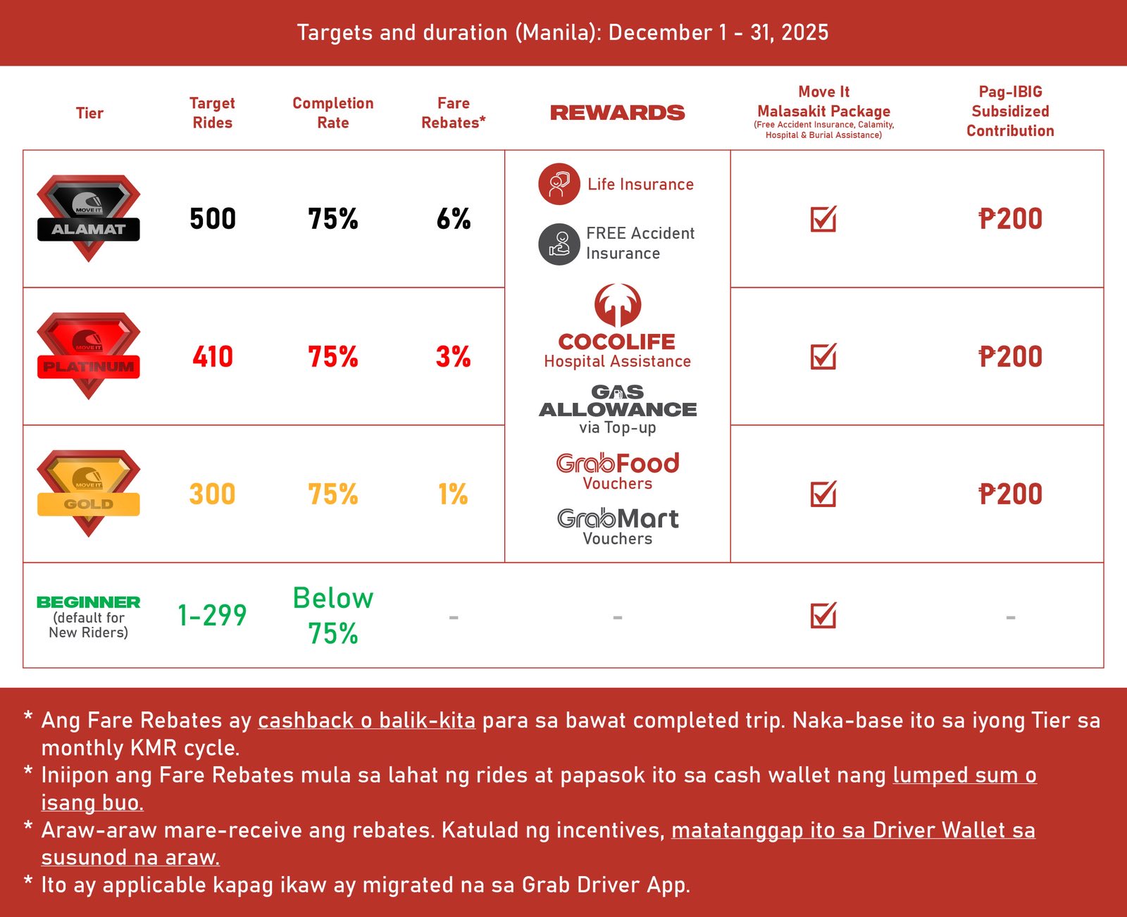 Walang separate application upang maging eligible sa Ka-Move It Rewards. Kasali lahat ng active Move It riders.