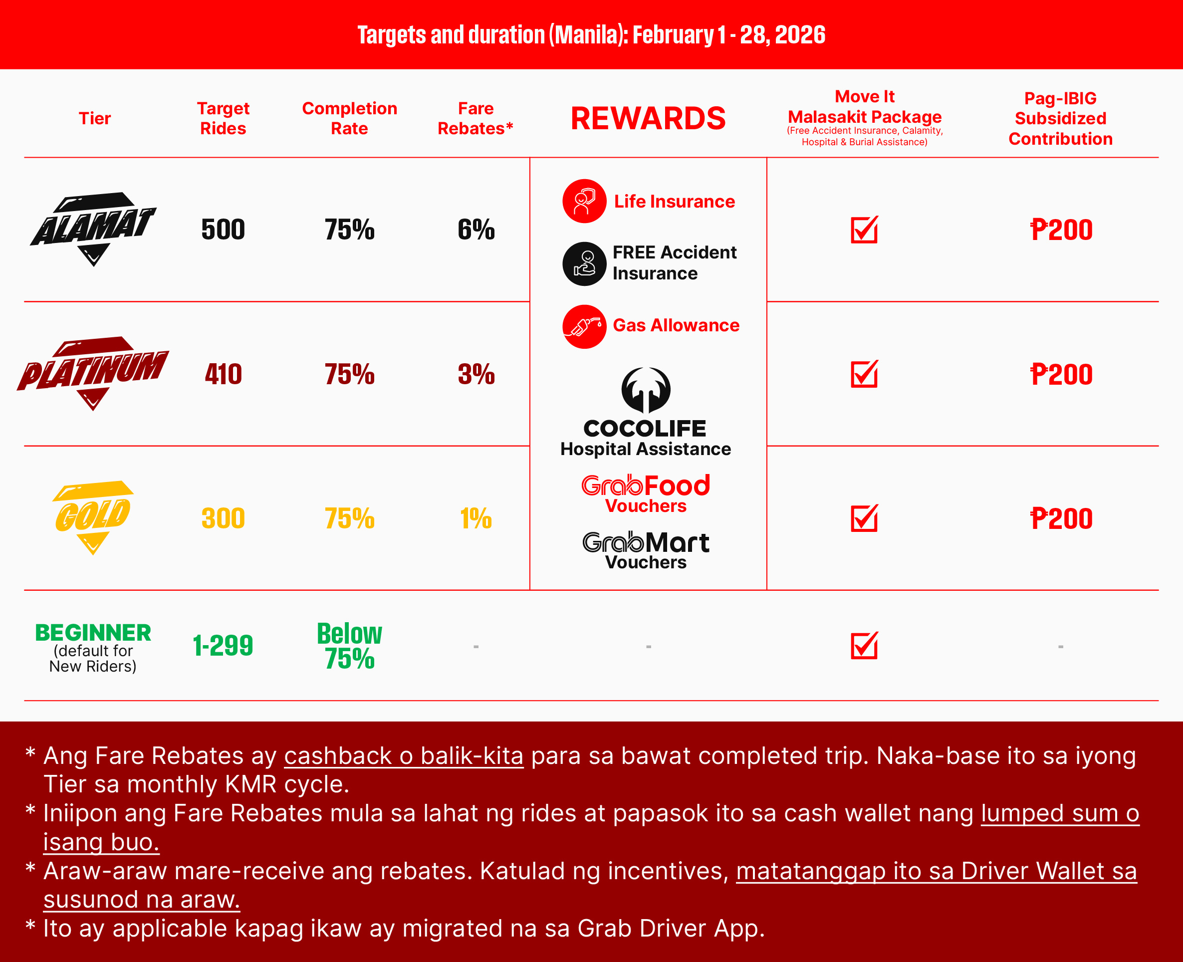 Kung mas maganda ang performance ng isang rider, mas mataas ang tier at mas malaki ang rewards na makukuha nito.