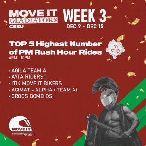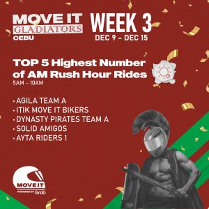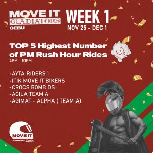 Kailan ang announcement ng panalo sa kabuuan ng Move It Gladiators Cebu rides challenge?