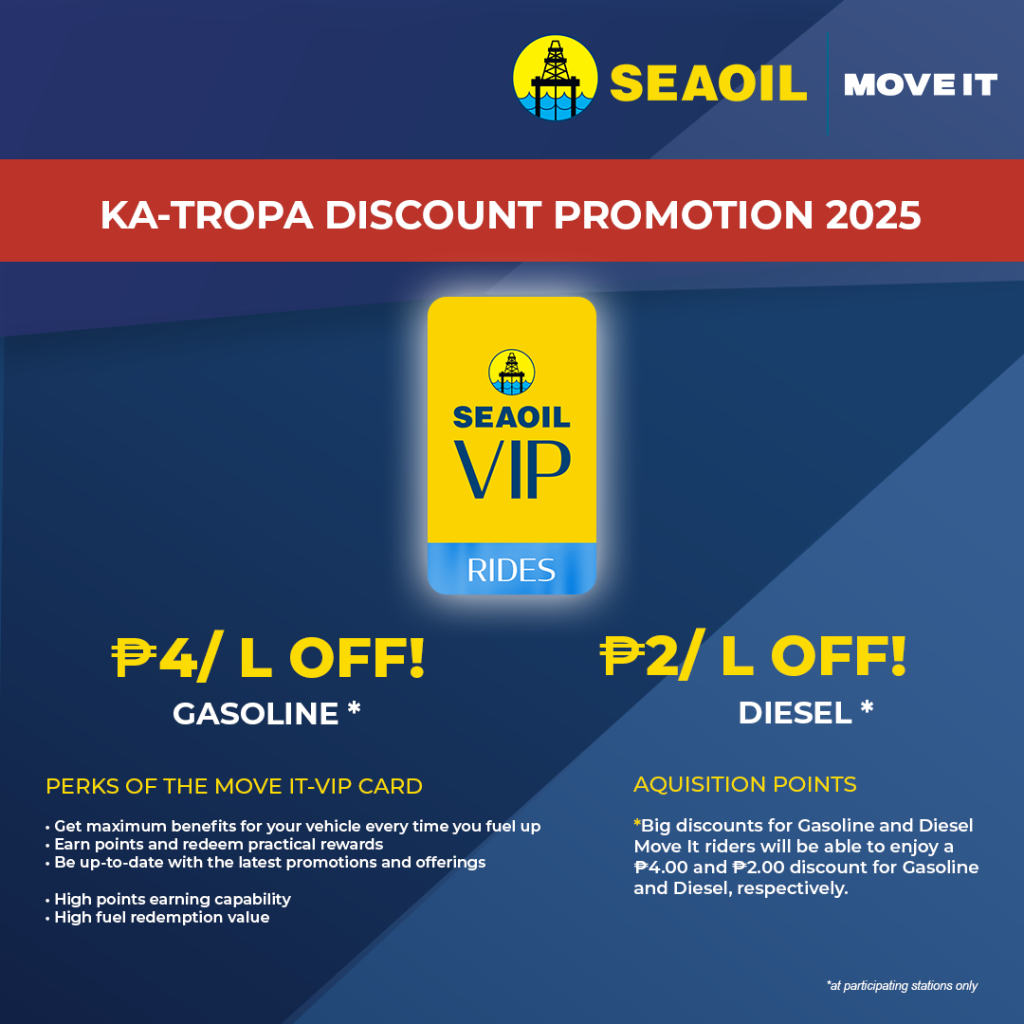 Free Oil Change at P10 OFF per liter sa Motorcycle Oil at Lubricants mula sa SEAOIL!